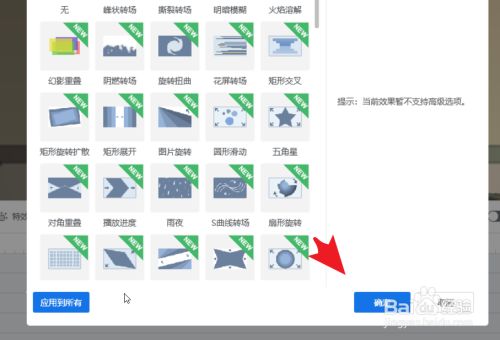 在过渡动画列表中进行选择,也可以在搜索框中进行搜刮。