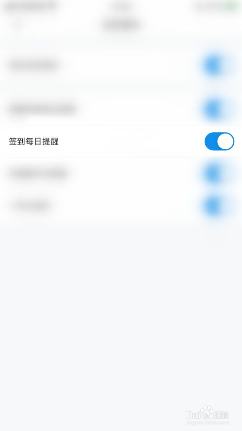 “签到每日提醒”后面的圆点变为蓝色即暗示宜人优选开启签到每日提醒当作功