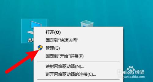 右键点击此电脑,点击菜单上的办理选项。