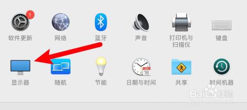 打开系统偏好设置,点击显示器。