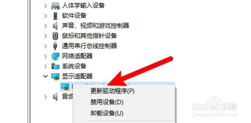 找到显卡,右键点击,选择更新显卡驱动即可。