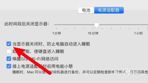点击选中显示器封闭时,防止主动进入睡眠的选项即可。