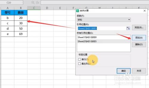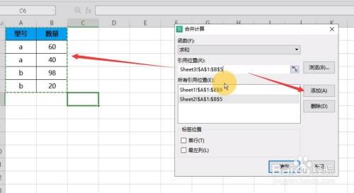 操纵同样的方式,我们将其他表格中需要归并的区域也一并添加到归并区域中。