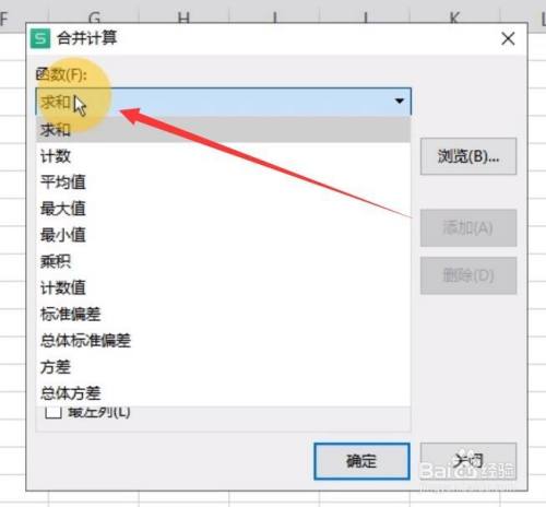 接下来将打开如图所示的函数设置界面,在此,我们设置想要归并数据的区域,点击如图所示的添加按钮,将其添加到合肥区域界面中。
