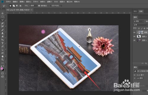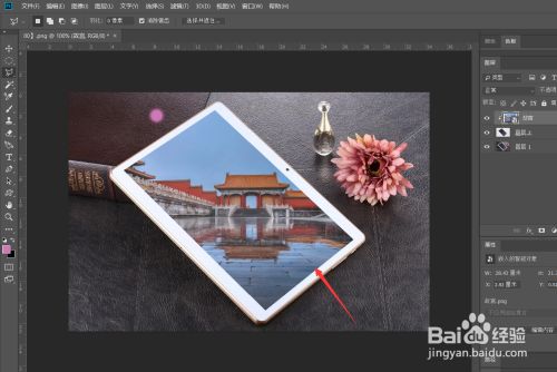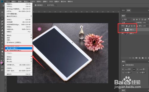 按ctrl+j复制选区到新图层,点击菜单栏的【文件】——【置入嵌入对象】,导入需要放入屏幕的照片。