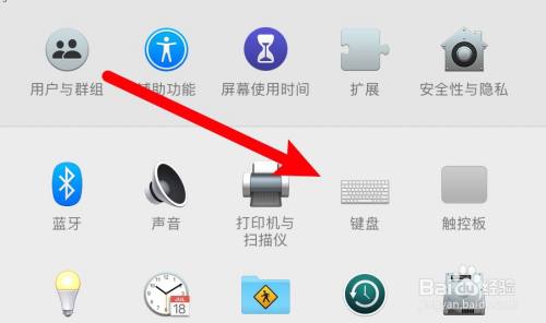 打开系统偏好设置,点击键盘。