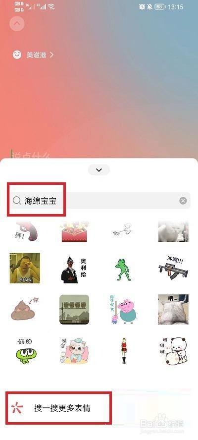 之后在搜索框中输入【海绵宝宝】,再呈现的良多脸色中上划,找到最下方的【搜一搜更多脸色】进入到更多脸色界面;
