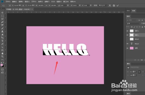 选择下半部门文字图层,按ctrl+t自由变换,右击选择【斜切】。