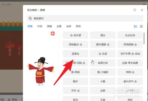 如下图所示,点击脚色,选择一个侧脸呈现的人物。