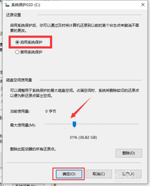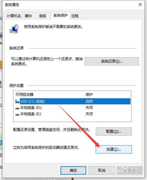 接下来,我们再选择响应的系统磁盘,点击建立按钮,即可建立系统还原点。
