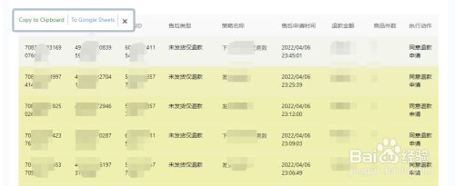 在表格上方会呈现两个功能选项,点击Copy to Clipboard(复制)