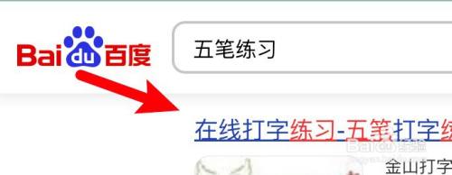 打开浏览器,百度搜刮五笔操练,点击打开第三个在线打字操练的链接。