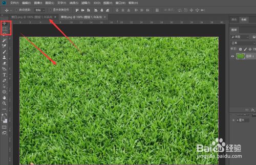我们找一张草地照片,用选框东西选择一个区域,用移动东西拖动到需要处置的照片上。