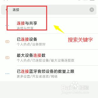 好比我们需要找到毗连和共享的选项,这里我们就点击输入关头字毗连就可以看到成果了。