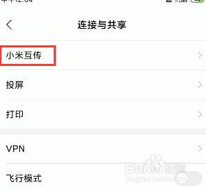 进入到毗连和共享页面之后我们点击第一个按钮小米互传。