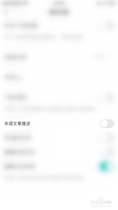 偏好设置界面点击“未读文章推送”后面的圆点