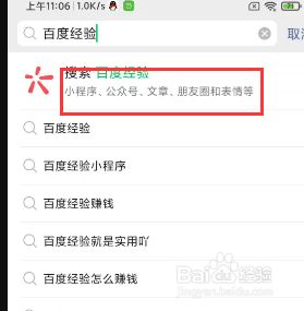 好比我搜刮的是百度经验这个关头词,我的朋友圈没有呈现过,所以没有搜刮到。