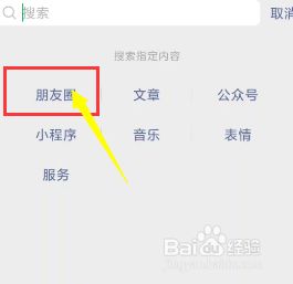 进入搜刮的页面之后这里可以看到有良多的选择,我们就选择朋友圈。