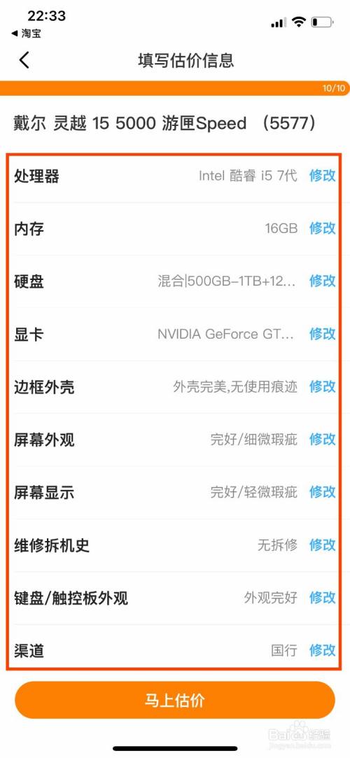 按照本身笔记本的现实环境填写信息,再点击【顿时估价】。