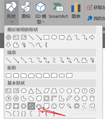 点击菜单中的插入,然后点击外形,点击禁止符。