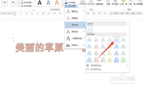 同时,我们可以对所添加的艺术字的结果添加文本结果,如图所示,从文本结果列表中,我们选择一种发光类型。