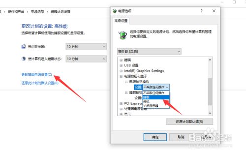 同时,我们可以更改高级电源设置,在其电源选项界面中,我们可以对电源的相关动作进行设置。