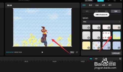 当视频中的布景被扣取完当作之后,我们就可以在布景列表中选择一种图片,作为视频布景来完当作设置操作了。