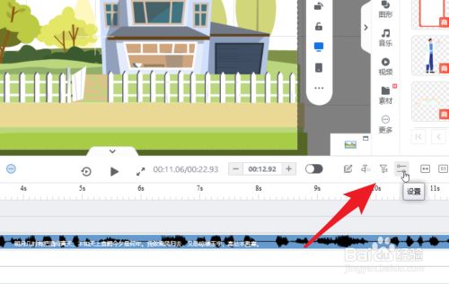 在时候轴上方东西栏中找到箭头所指的“设置”。
