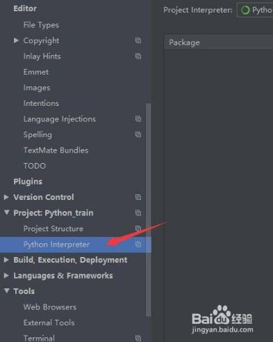 然后,在pycharm的设置界面,我们可以找到Python诠释器选项,点击进入即可。