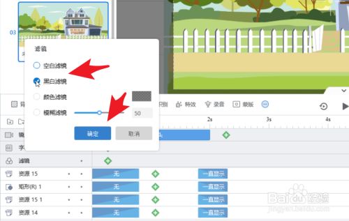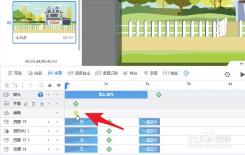 点击需要建造口角动画的场景,在时候轴上点击滤镜选项。
