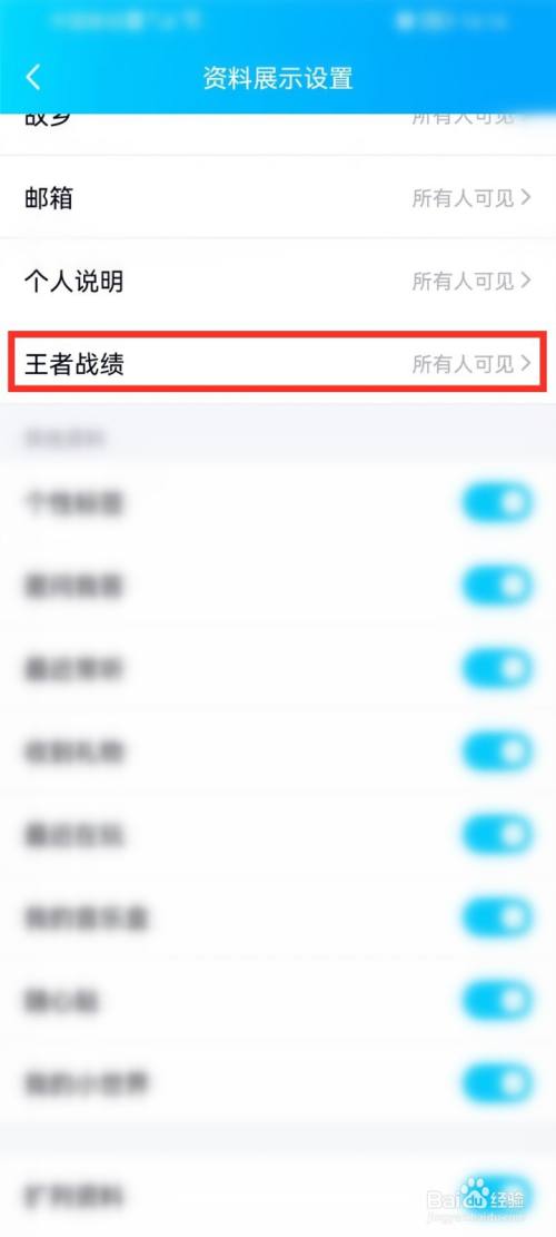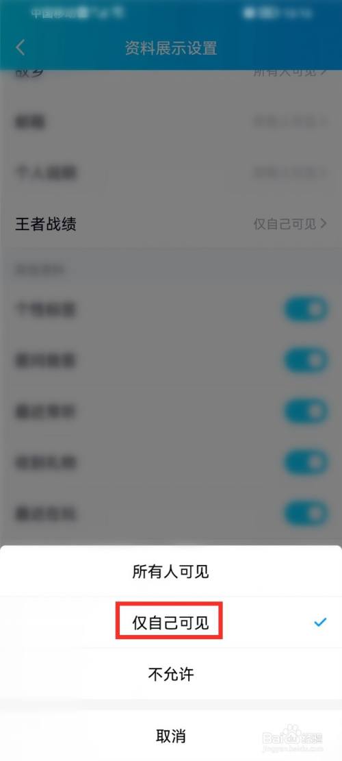 在弹出的窗口中选择”仅本身可见“,即可埋没王者战绩。