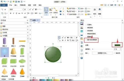 点击图片或纹理填充,选择一种纹理,就可以给球添加上纹理,如下图所示;