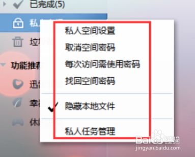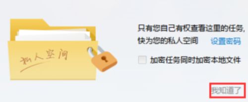 点击左侧菜单栏里的【私家空间】选项,弹出提醒窗口,系统提醒您为私家空间设置自力密码。