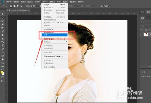 下面,我们点击菜单栏的【选择】——【本家儿体】,将人像本家儿体拔取出来。