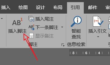 在引用下的菜单中点击插入脚注。