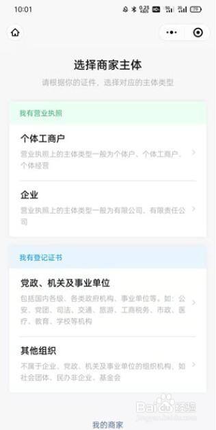 赞成授权小我信息、头像后,选择需要申请注册的商家本家儿体,按照本身的环境选择;