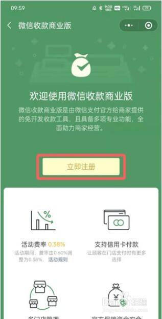 接着点击【当即注册】,申请当作为商户,主动跳转到微信商家助手小程序;