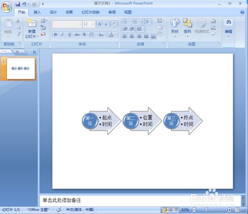 我们就在PPT中建立好了一个流程箭头。