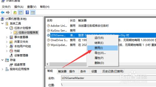 接下来我们在计较机办理界面中切换到打算使命选项卡,将如图所示的打算使命停用失落。