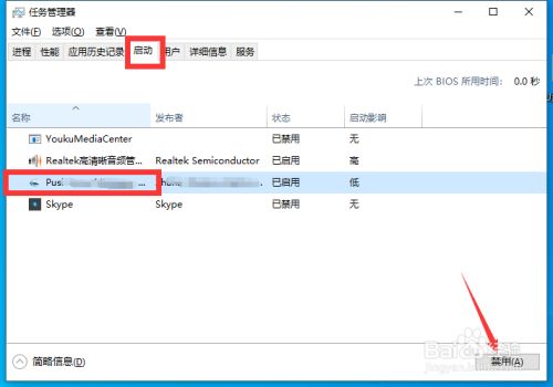 最后,我们在打开的使命办理界面中,切换到启动选项卡,在此,将不需要启动的历程和使命禁用失落即可。