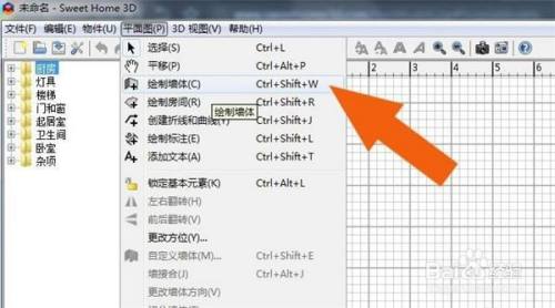 然后在窗口中,鼠标左键单击菜单【画图】下的绘制墙体,如下图所示。
