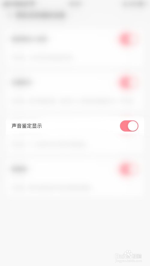 “声音判定显示”后面的圆点变为红色即暗示开启声鉴声音判定显示当作功