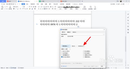 在查找替代页面,点击特别格局。