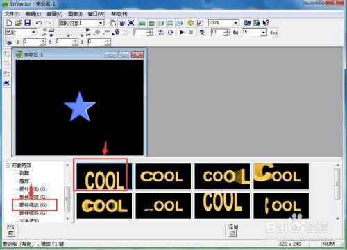 点击对象特效,选择部件缩放,添加一种动画样式;