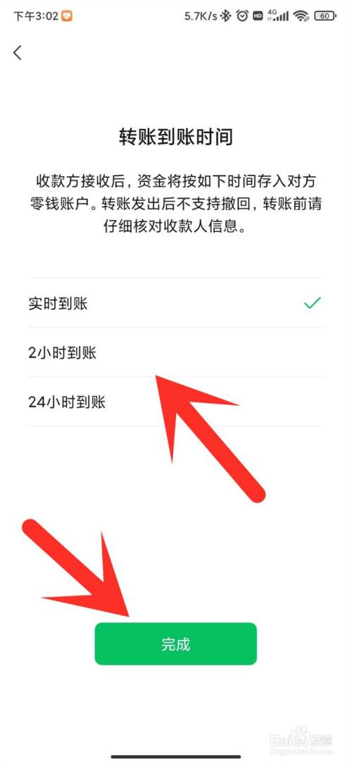 我们在这里选择到账时候,点击下方保留即可。