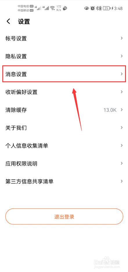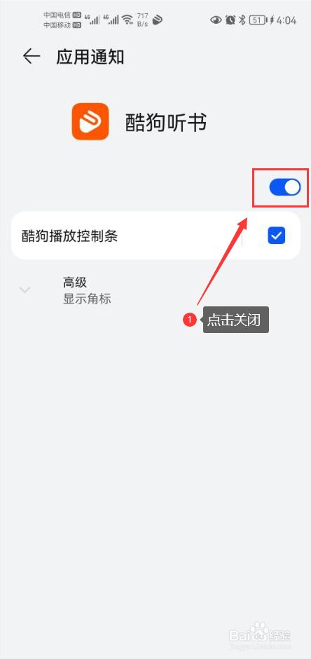 点击封闭app动静推送通知功能开关【截图中圈红的部门】