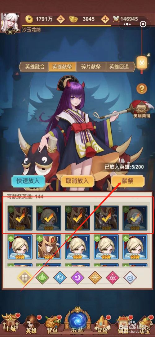 选择好想要献祭的英雄,然后继续点击“献祭”,如图。