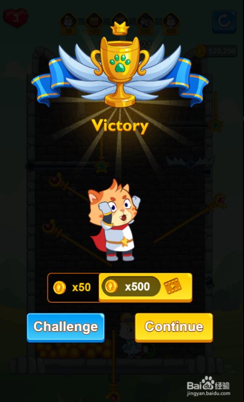 猫公本家儿顺遂获救,弹出奖杯动画,如图,这样就过关了。