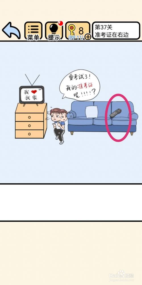 移开沙发上的抱枕,可以获得一个【遥控器】。