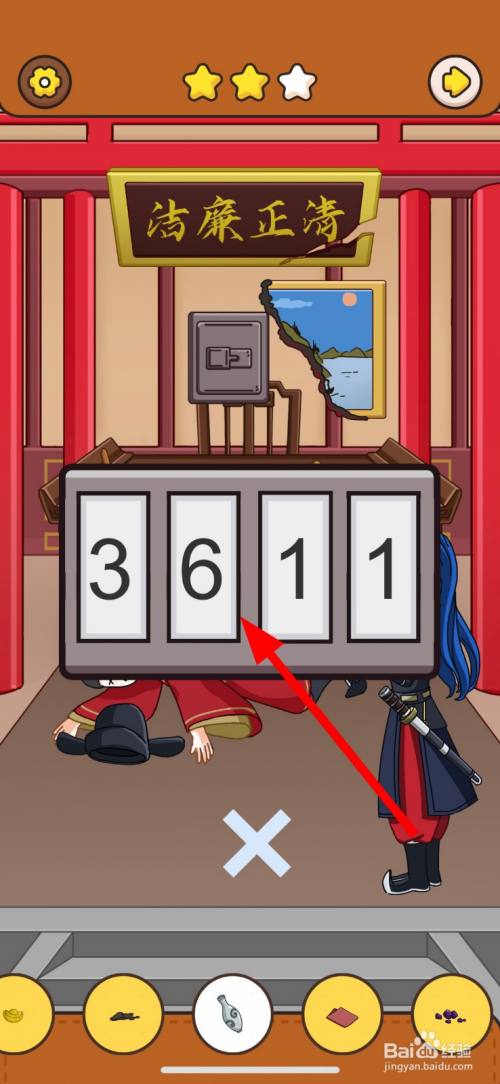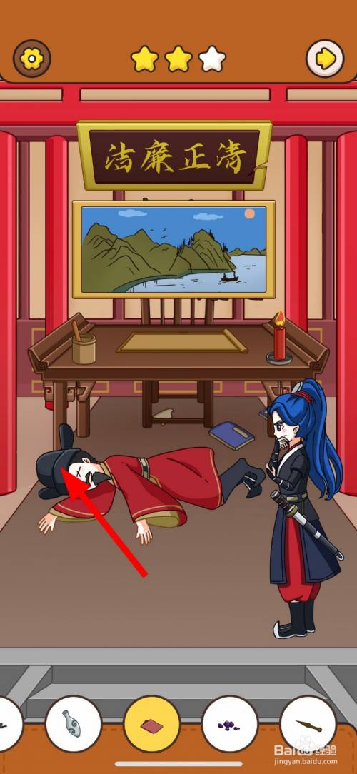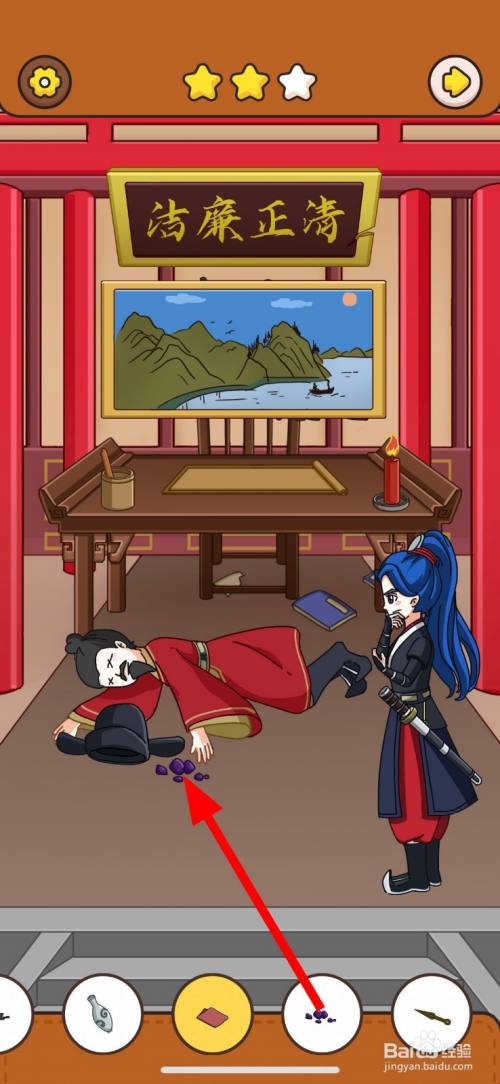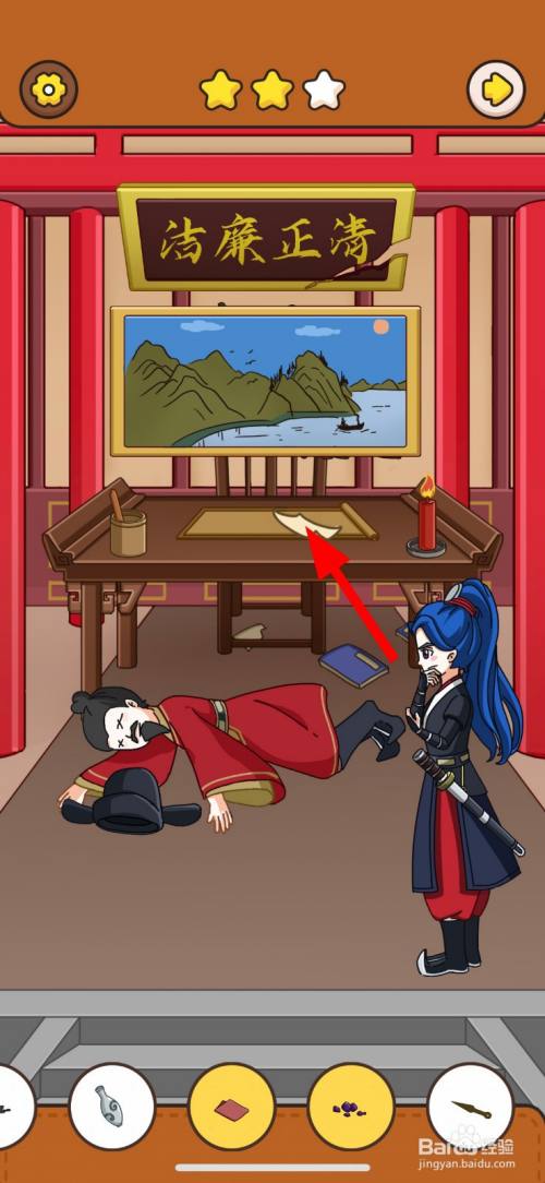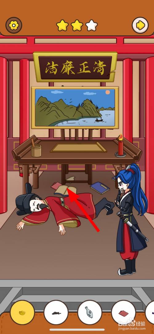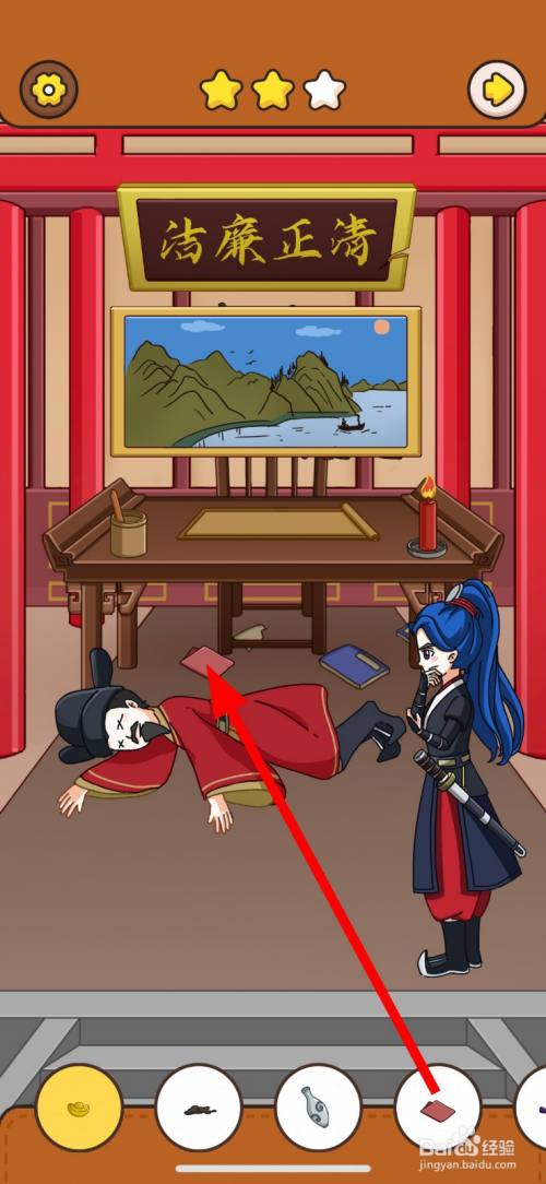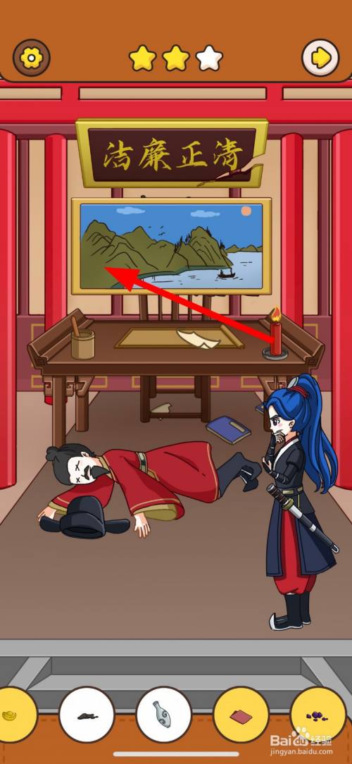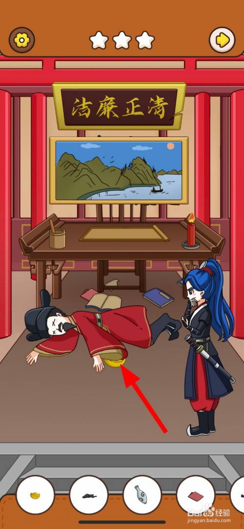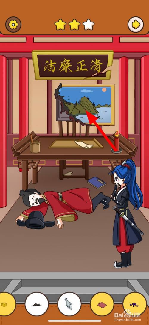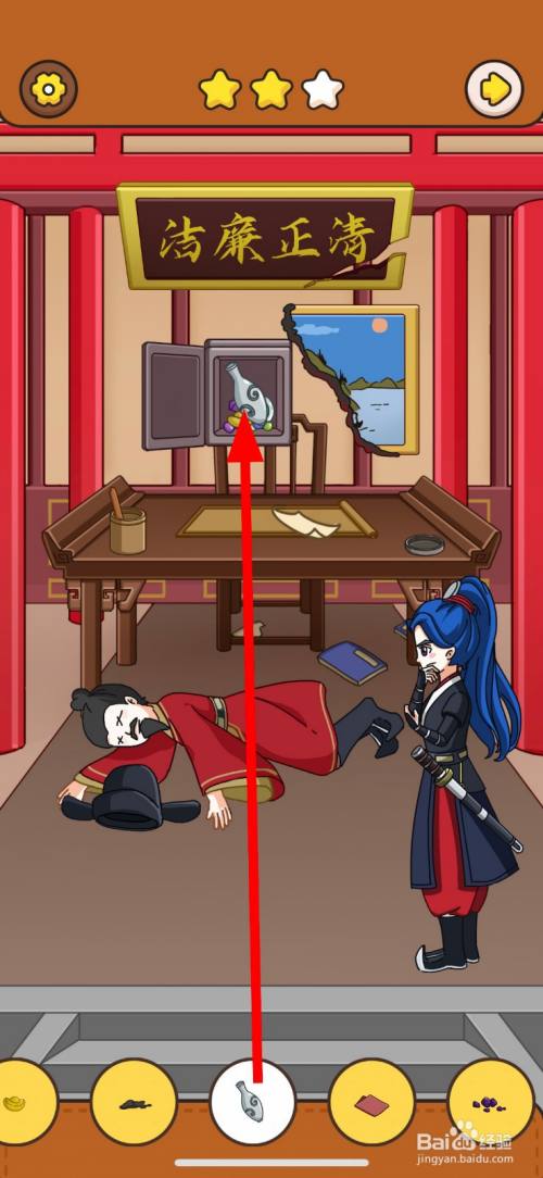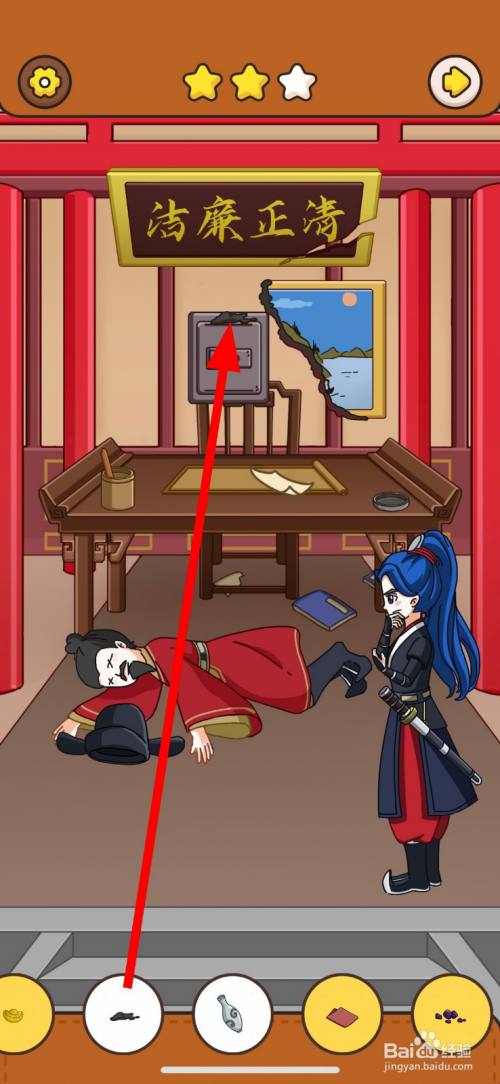 然后,点击清正清廉牌匾右边破损的缺口2次。